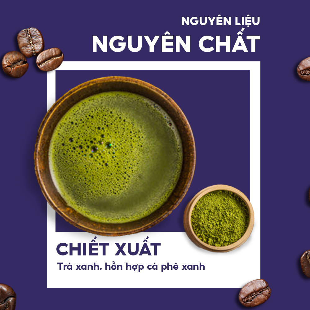 - Chiết xuất cà phê xanh, với hàm lượng axit chlorogenic cao, hỗ trợ quá trình trao đổi chất, giúp bạn duy trì vóc dáng cân đối.