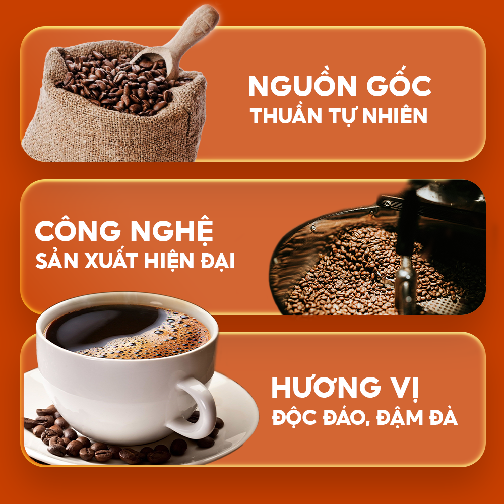 - Cà phê Robusta: “Liều thuốc” tỉnh táo quen thuộc, cà phê không chỉ mang đến sự tỉnh táo, tập trung cần thiết để bắt đầu một ngày mới mà còn kích thích sáng tạo, cải thiện tâm trạng, giúp bạn sẵn sàng chinh phục mọi thử thách.