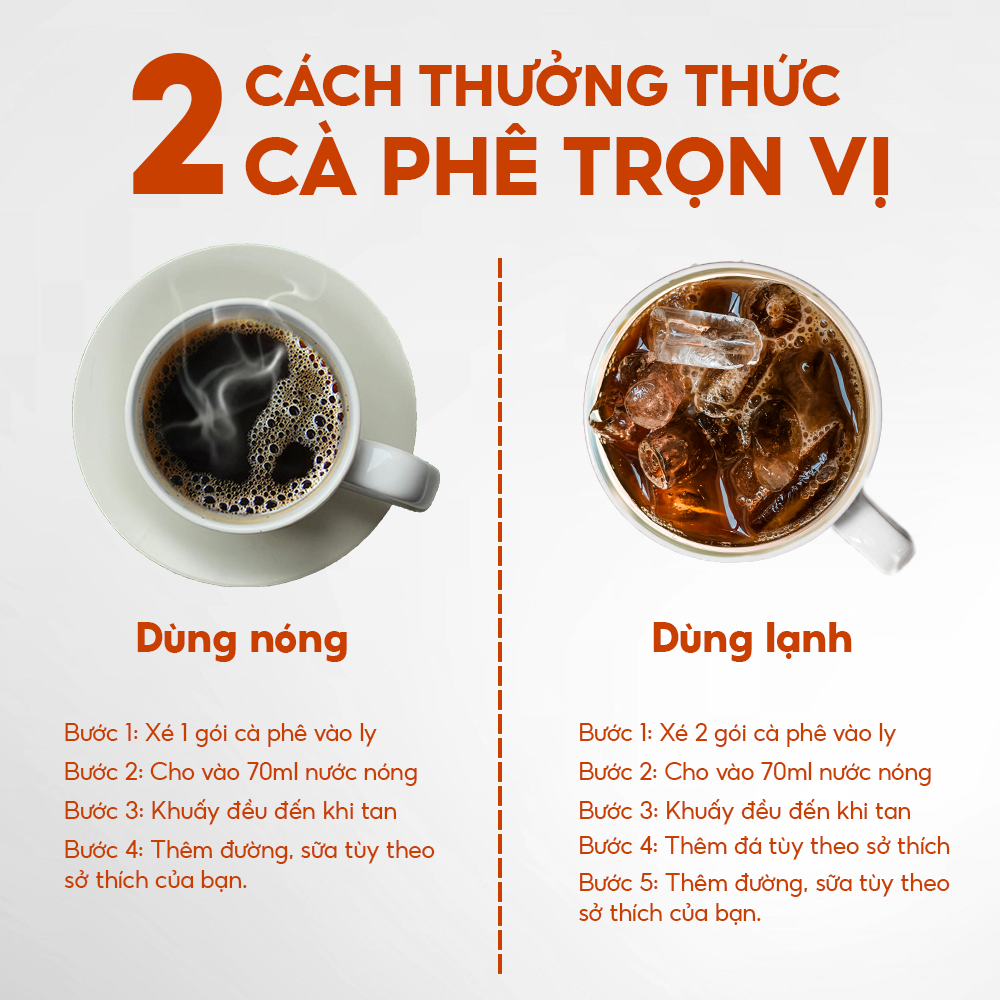 - Thơm ngon, tiện lợi: Hương vị cà phê đậm đà hòa quyện cùng hương thơm đặc trưng của nhân sâm tạo nên một bản hòa ca hương vị độc đáo, khó quên. Dạng hòa tan tiện lợi, dễ dàng pha chế và thưởng thức mọi lúc mọi nơi, giúp bạn tiết kiệm thời gian mà vẫn tận hưởng trọn vẹn hương vị tuyệt hảo.