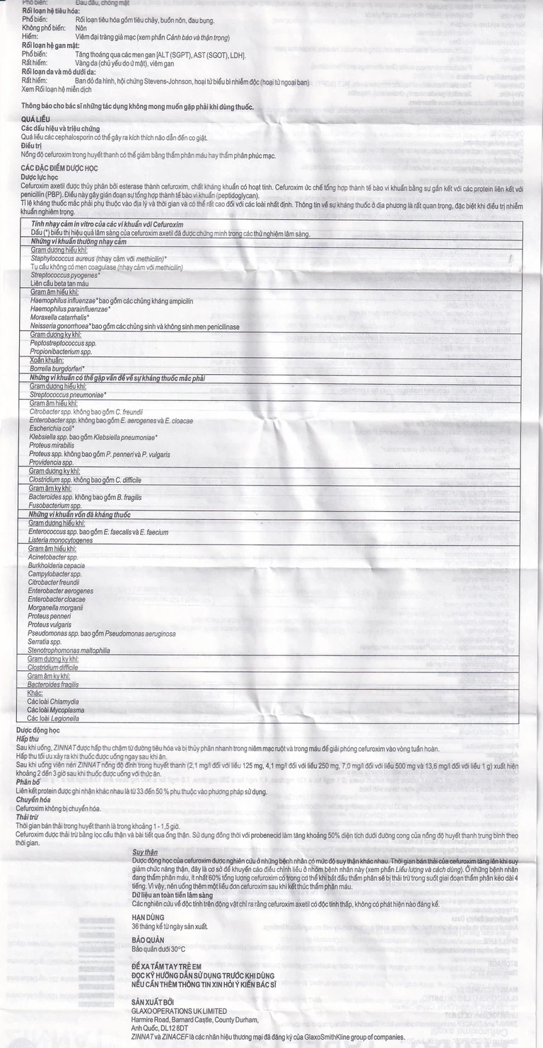 Nói chung tác dụng phụ do Zinnat chỉ có tính chất nhẹ và thoáng qua.