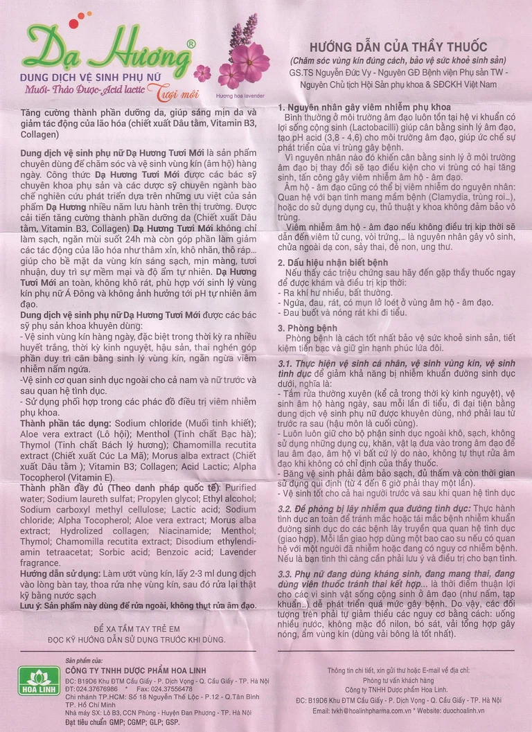 Thành phần của Dung dịch vệ sinh phụ nữ Dạ Hương Lavender