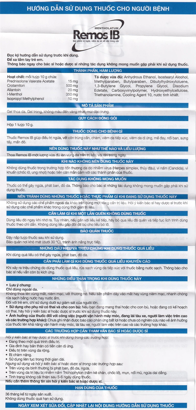 Thành phần của Gel Remos IB