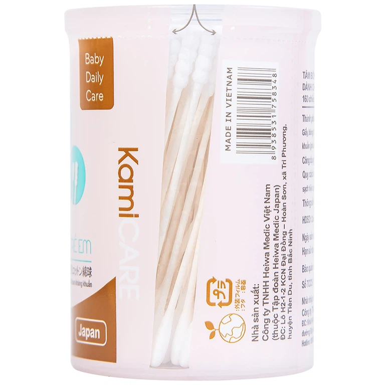 Tăm bông trẻ em Kamicare là sản phẩm của thương hiệu Kamicare, thuộc sở hữu của công ty TNHH Heiwa Medic có xuất xứ từ Nhật Bản. Với 50 năm kinh nghiệm hình thành và phát triển, các sản phẩm của Heiwa luôn là lựa chọn hàng đầu của người tiêu dùng, các đối tác phân phối và bệnh viện lớn. Những sản phẩm nổi bật của Heiwa là tăm bông thân giấy cho đối tượng người lớn và trẻ em, tăm bông dùng trong y tế, tăm bông dùng trong công nghiệp…
