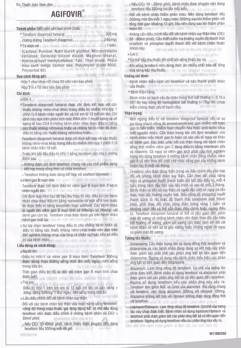 Thành phần của Thuốc Agifovir 300mg