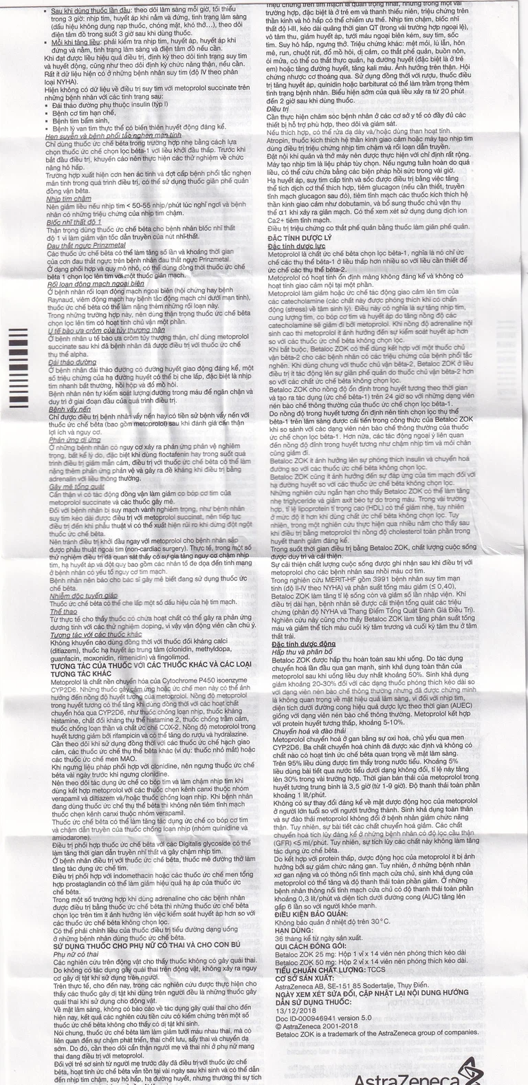 Betaloc ZOK 25mg điều trị tăng huyết áp: Làm giảm huyết áp và giảm nguy cơ tử vong do tim mạch và bệnh mạch vành (kể cả đột tử) và tỉ lệ tổn thương cơ quan.