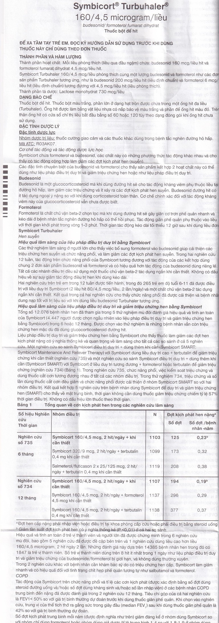 Biến cố ngoại ý nghiêm trọng liên quan đến hen và đợt kịch phát hen có thể xảy ra khi điều trị bằng Symbicort. Bệnh nhân có thể được tiếp tục điều trị nhưng cần tham khảo ý kiến bác sĩ nếu triệu chứng hen vẫn không được kiểm soát hoặc xấu hơn sau khi điều trị bằng Symbicort.