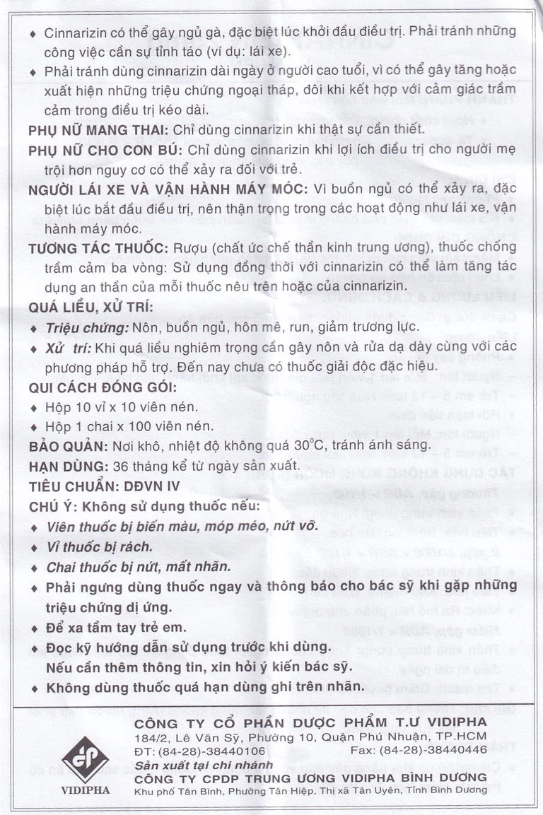 Chỉ dùng cinnarizin khi thật sự cần thiết.