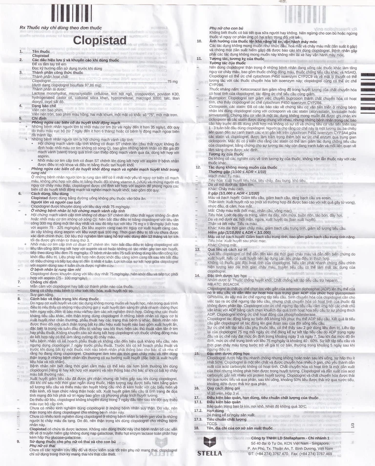 Cách dùng Thuốc Clopistad 75mg