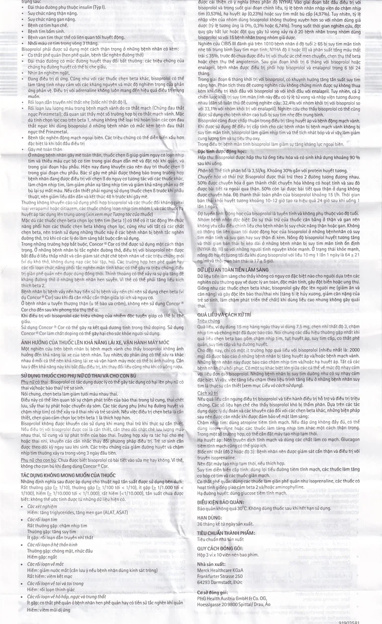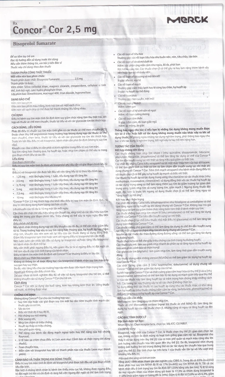 Trước khi sử dụng thuốc Concor Cor 2,5mg bạn cần đọc kỹ hướng dẫn sử dụng và tham khảo thông tin bên dưới.
