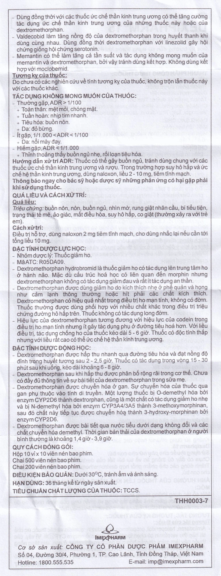 Cơ sở sản xuất: Công Ty Cổ Phần Dược Phẩm Imexpharm.