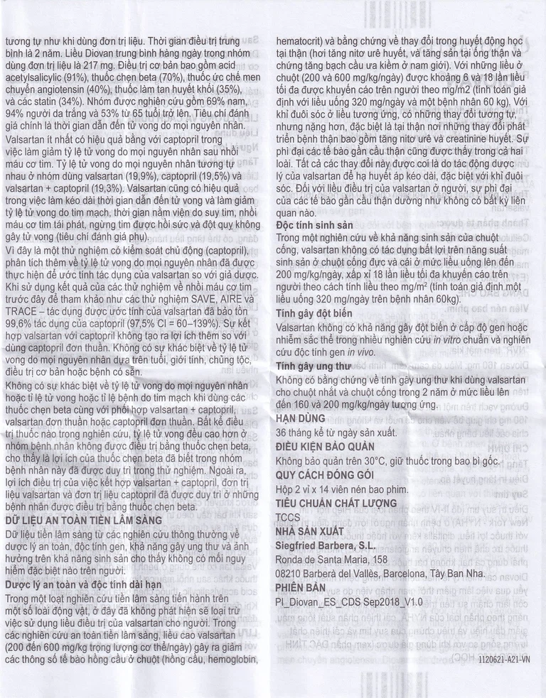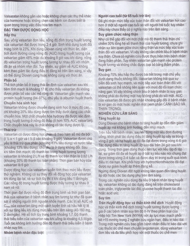 Thời gian theo dõi trung bình gần 2 năm. Liều dùng Diovan trung bình hằng ngày trong thử nghiệm Val – HeFT là 254mg.