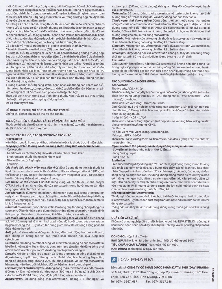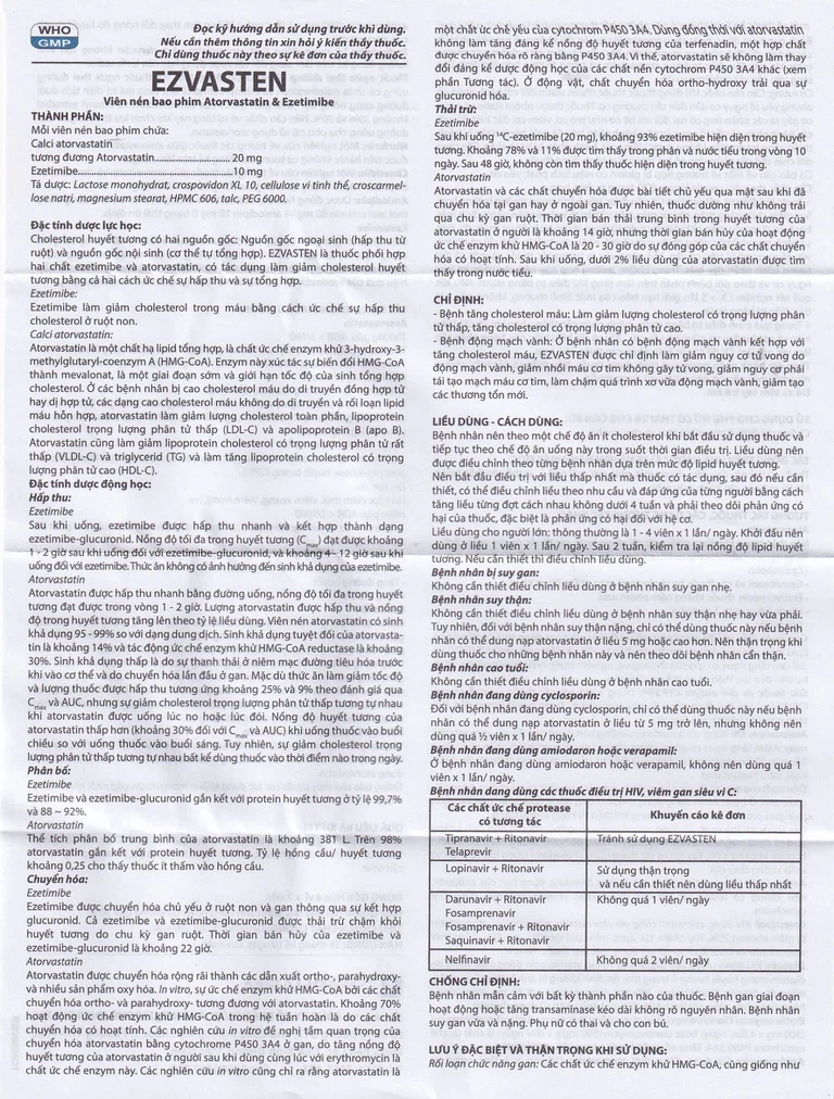 Cách dùng Thuốc Ezvasten
