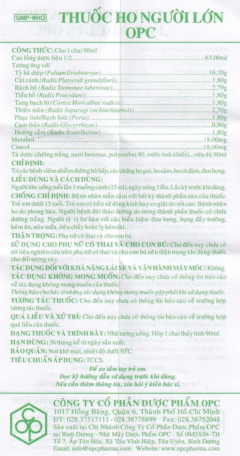 THUỐC HO NGƯỜI LỚN OPC được chỉ định dùng trong các trường hợp sau: