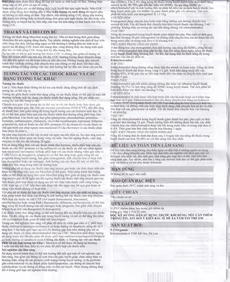 Các tương tác có thể xảy ra với các thuốc hoặc thảo dược gây cảm ứng enzyme gan, đặc biệt các enzyme cytochrome P450 (CYP), dẫn đến tăng độ thanh thải, làm giảm nồng độ trong huyết tương của các hormon sinh dục, do đó có thể làm giảm hiệu quả của các thuốc tránh thai đường uống phối hợp, bao gồm Mercilon. Các thuốc này bao gồm (phenytoin, phenobarbital, primidon, bosentan, carbamazepin, rifampicin, và có thể oxcarbazepin, topiramate, felbamate, griseofulvin, một số thuốc ức chế HIV protease và các thuốc ức chế quá trình sao chép ngược non-nucleosid và các thuốc chứa thảo dược St.John’s.