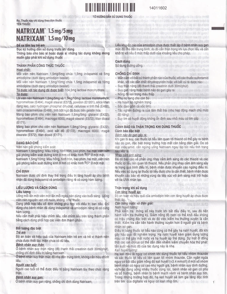 Thuốc Natrixam được chỉ định thay thế trong điều trị tăng huyết áp cho bệnh nhân đã dùng indapamide và amlodipine riêng rẽ có cùng hàm lượng.
