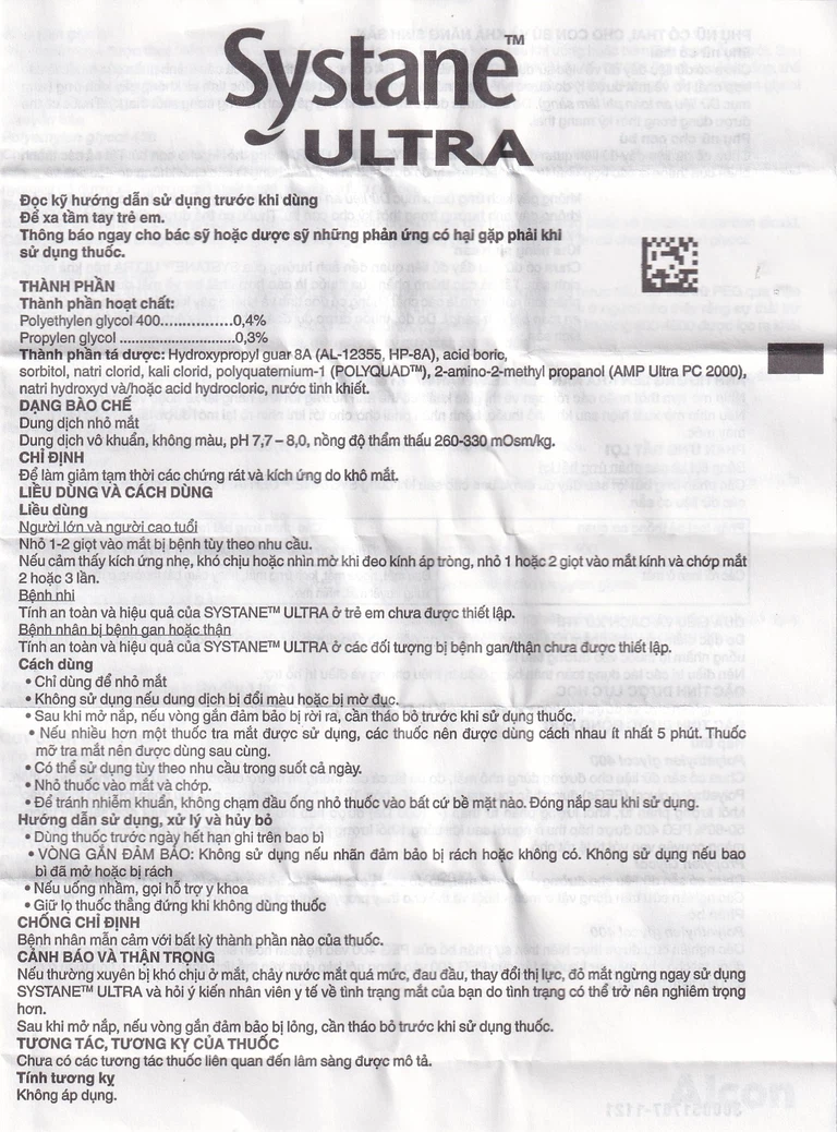 Tính an toàn và hiệu quả của Systane Ultra ở trẻ em chưa được thiết lập.