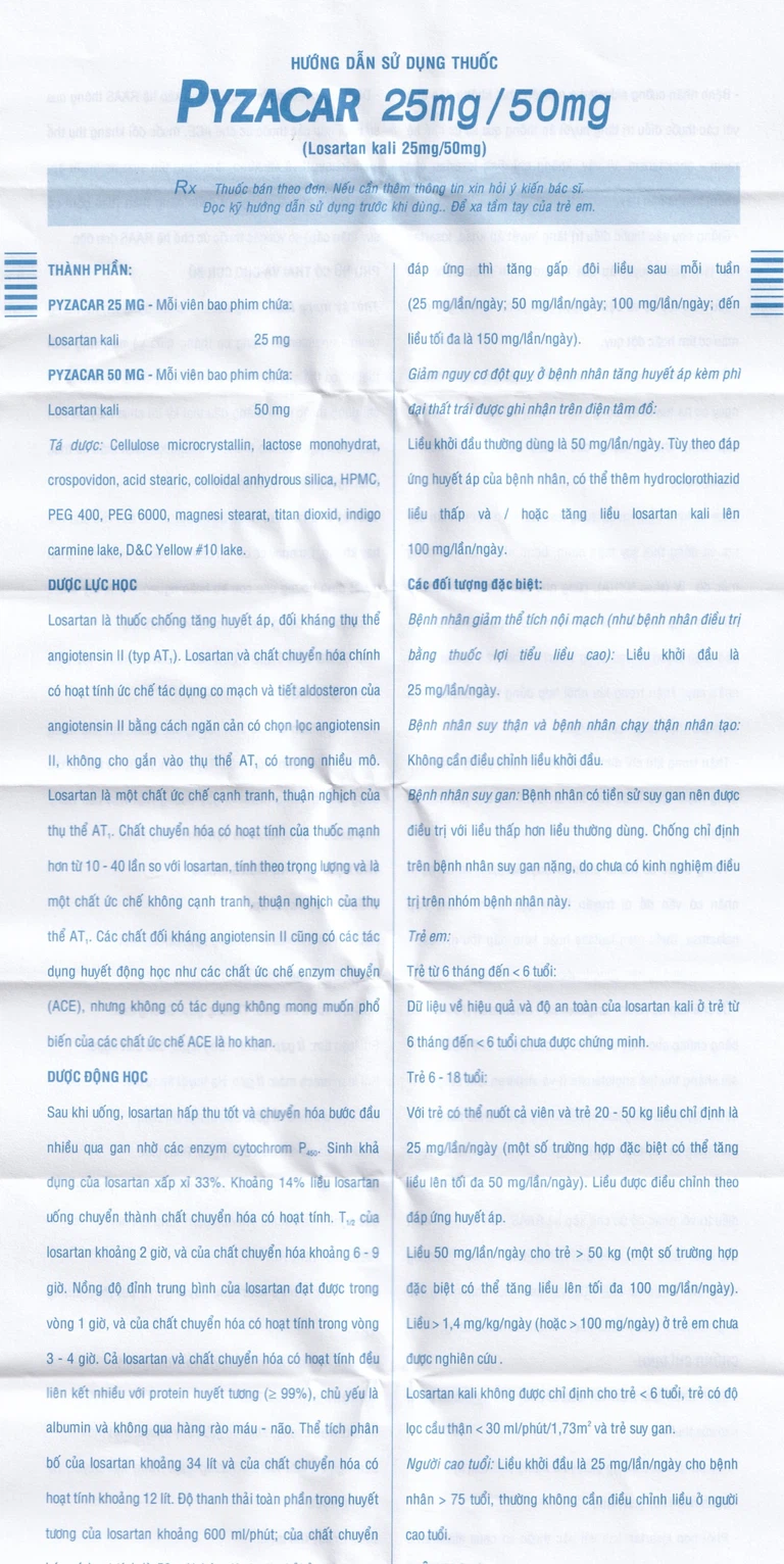 Công dụng của Thuốc Pyzacar 25mg