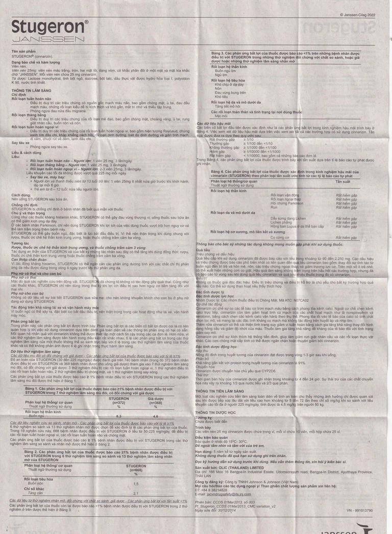 Stugeron 25 mg có thể gây buồn ngủ, đặc biệt là lúc bắt đầu điều trị. Vì thế nên thận trọng khi dùng chung với rượu, thuốc ức chế hệ thần kinh trung ương hoặc thuốc chống trầm cảm ba vòng.