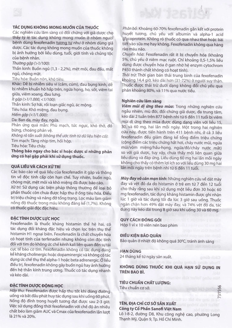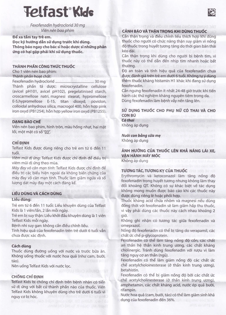 Công dụng của Thuốc Telfast Kids 30mg
