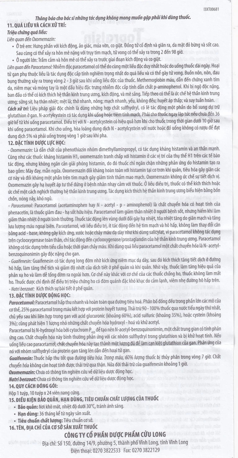 - Thần kinh: Buồn ngủ, chóng mặt.