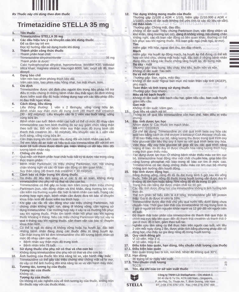 Thuốc Trimetazidine Stella được chỉ định cho người lớn như liệu pháp hỗ trợ điều trị triệu chứng ở những bệnh nhân đau thắt ngực ổn định không được kiểm soát đầy đủ hoặc không dung nạp với các liệu pháp điều trị đau thắt ngực khác.