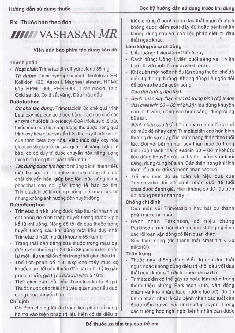 Công dụng của Thuốc Vashasan MR 35