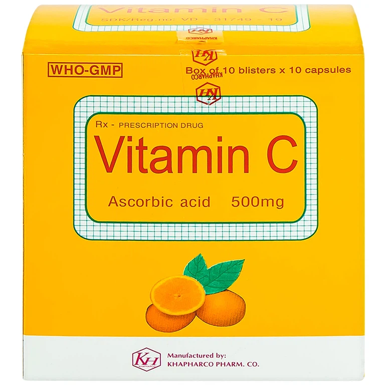 Thuốc Vitamin C 500mg là sản phẩm của Công ty Cổ phần Dược phẩm Khánh Hoà (Khapharco) có hoạt chất chính là Acid ascorbic dùng phòng và điều trị bệnh Scorbut.