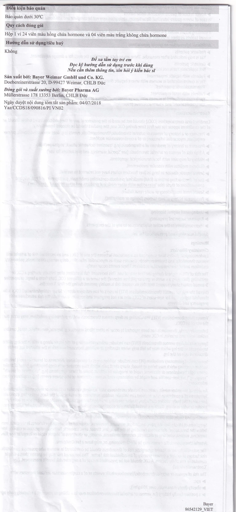 Lưu ý rằng nguy cơ huyết khối liên quan đến thai kỳ cao hơn nguy cơ huyết khối liên quan đến COCs liều thấp (< 0,05 mg ethinylestradiol).