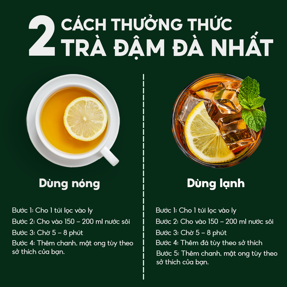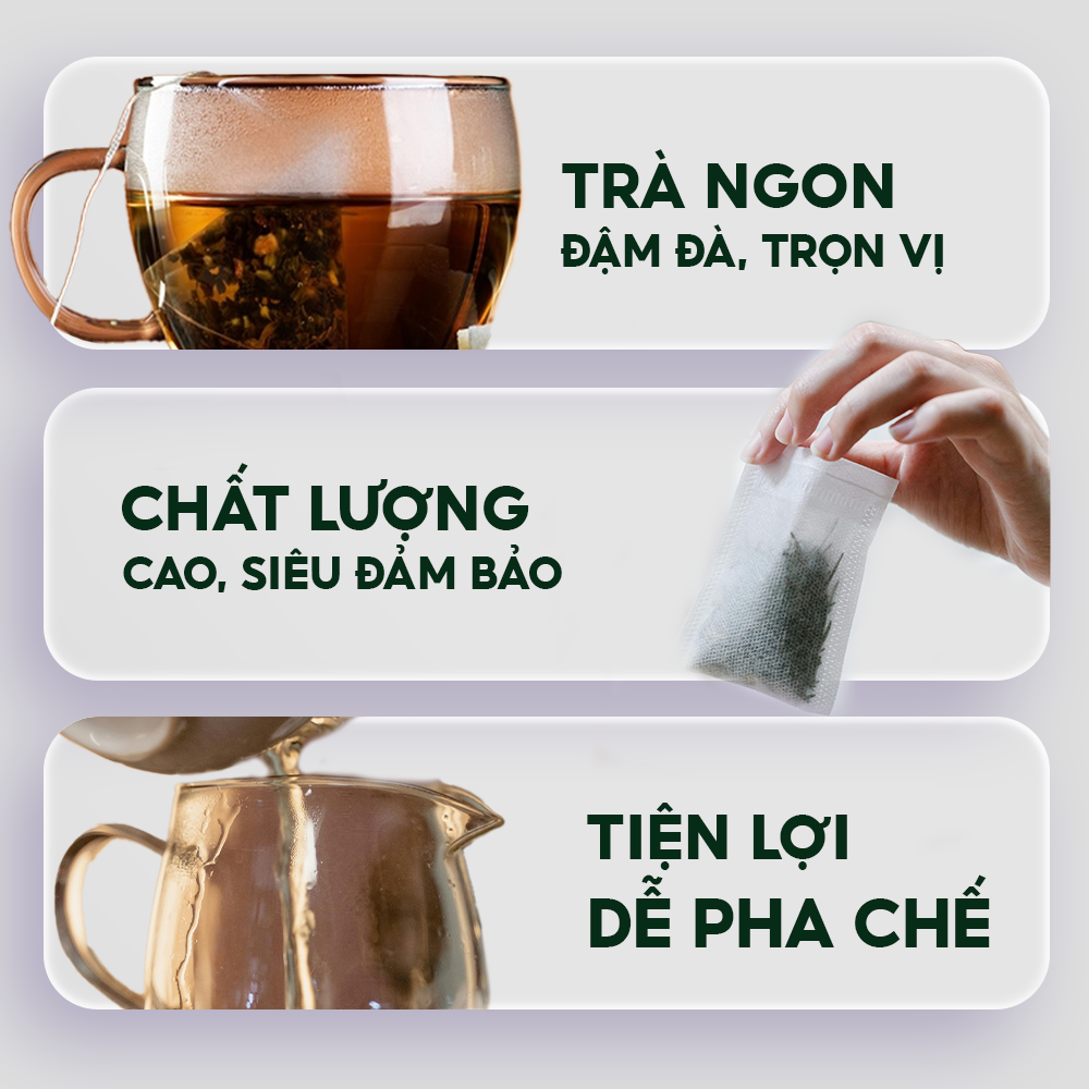 • Tiện Lợi, Nhanh Chóng: Chỉ cần vài phút, bạn đã có ngay một ly trà thơm ngon, bổ dưỡng, thích hợp cho mọi thời điểm trong ngày.