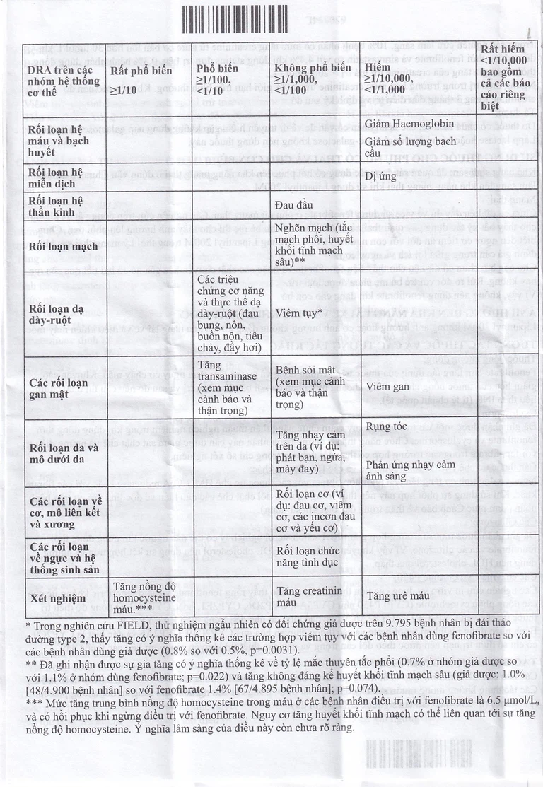 Các chất ức chế HMG – CoA reductase và các fibrat khác: Nguy cơ nhiễm độc cơ nghiêm trọng tăng lên nếu fenofibrate được sử dụng đồng thời với các chất ức chế HMG – CoA reductase hoặc các fibrat khác. Liệu pháp phối hợp như vậy nên được sử dụng một cách thận trọng và bệnh nhân được theo dõi chặt chẽ về các dấu hiệu nhiễm độc cơ.