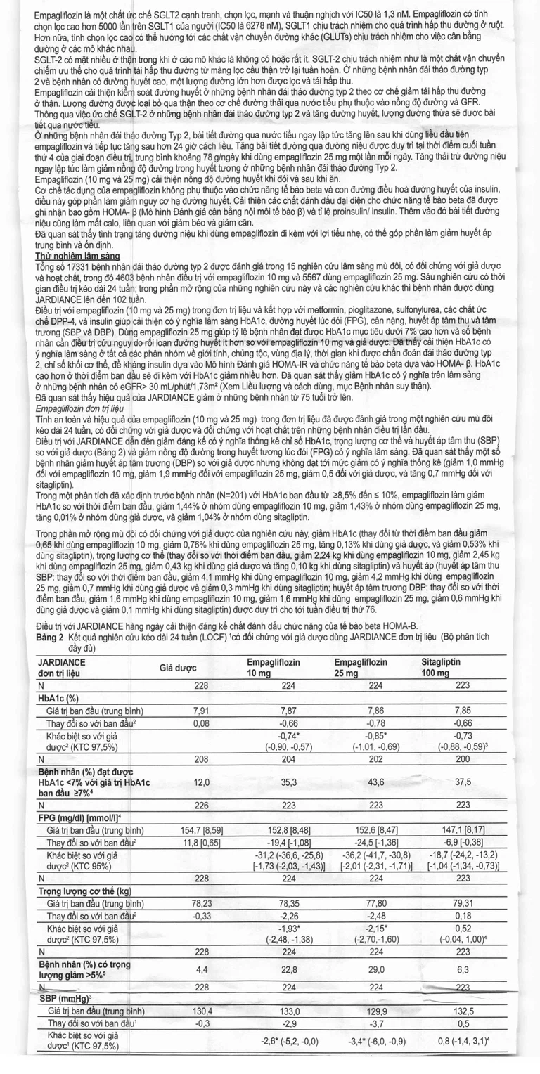 Thuốc Jardiance 25mg chỉ định trong các trường hợp sau: