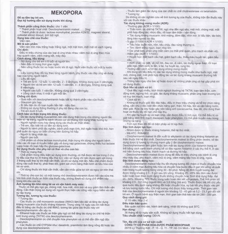 Thuốc Mekopora 2mg được chỉ định dùng trong các trường hợp sau: Điều trị triệu chứng các biểu hiện dị ứng khác nhau như viêm mũi (theo mùa hay quanh năm), viêm kết mạc, mề đay.