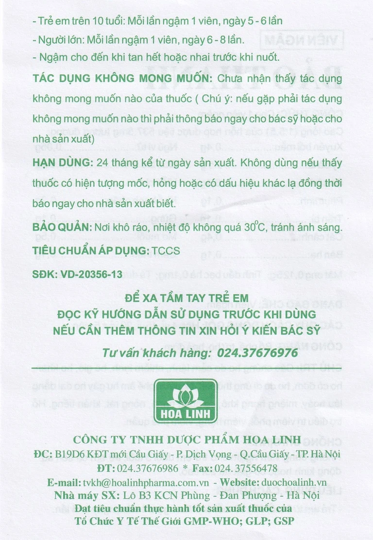 Mỗi lần ngậm 1 viên. Ngậm cho đến khi tan hết hoặc nhai trước khi nuốt.