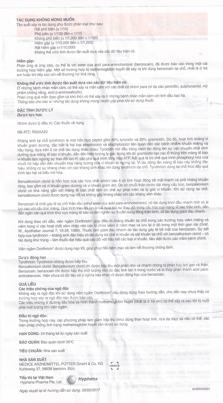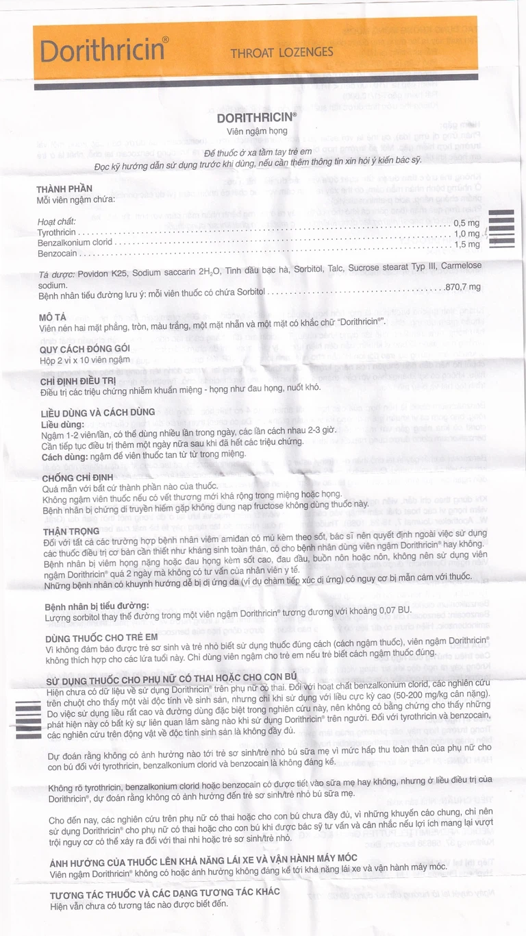 Bệnh nhân bị tiểu đường: Lượng sorbitol thay thế đường cho 1 viên ngậm Dorithricin tương đương với khoảng 0,07 BU.