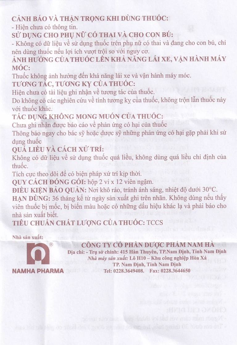 Nhà sản xuất: Công ty Cổ phần Dược phẩm Nam Hà.