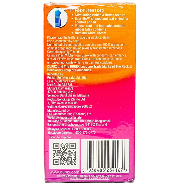 Chỉ được sử dụng bao cao su Durex Pleasuremax một lần.