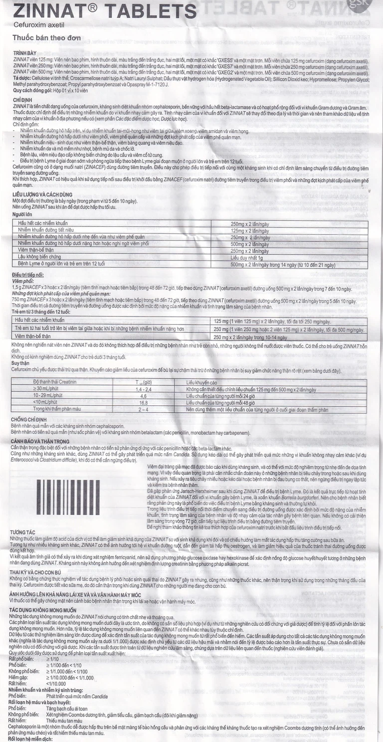 - Zinnat là tiền chất dạng uống của cefuroxim, kháng sinh diệt khuẩn nhóm cephalosporin, bền vững với hầu hết beta-lactamase và có hoạt phổ rộng với vi khuẩn gram âm và gram dương.