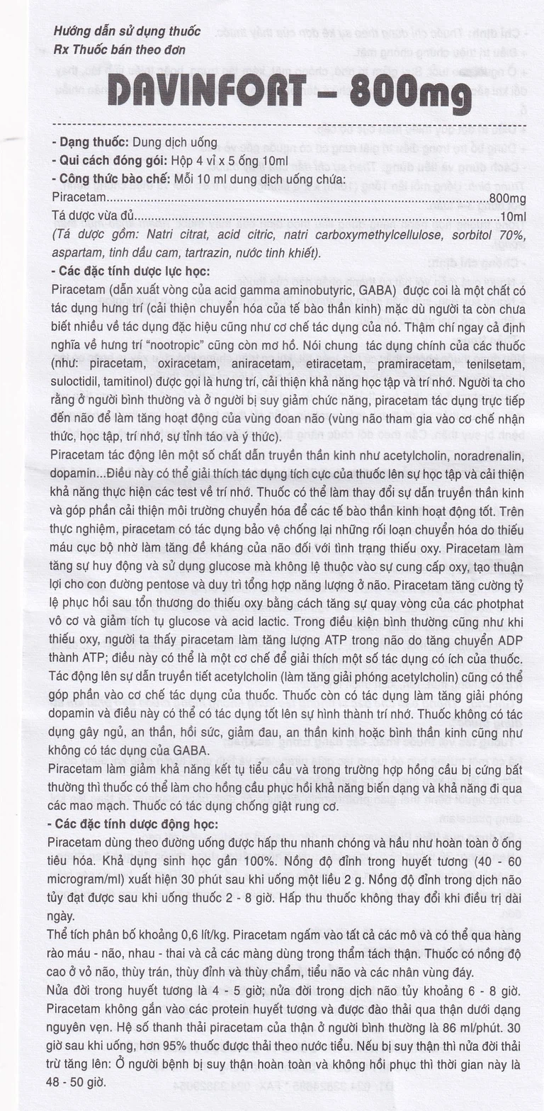 Davinfort 800mg dạng dung dịch dùng đường uống.