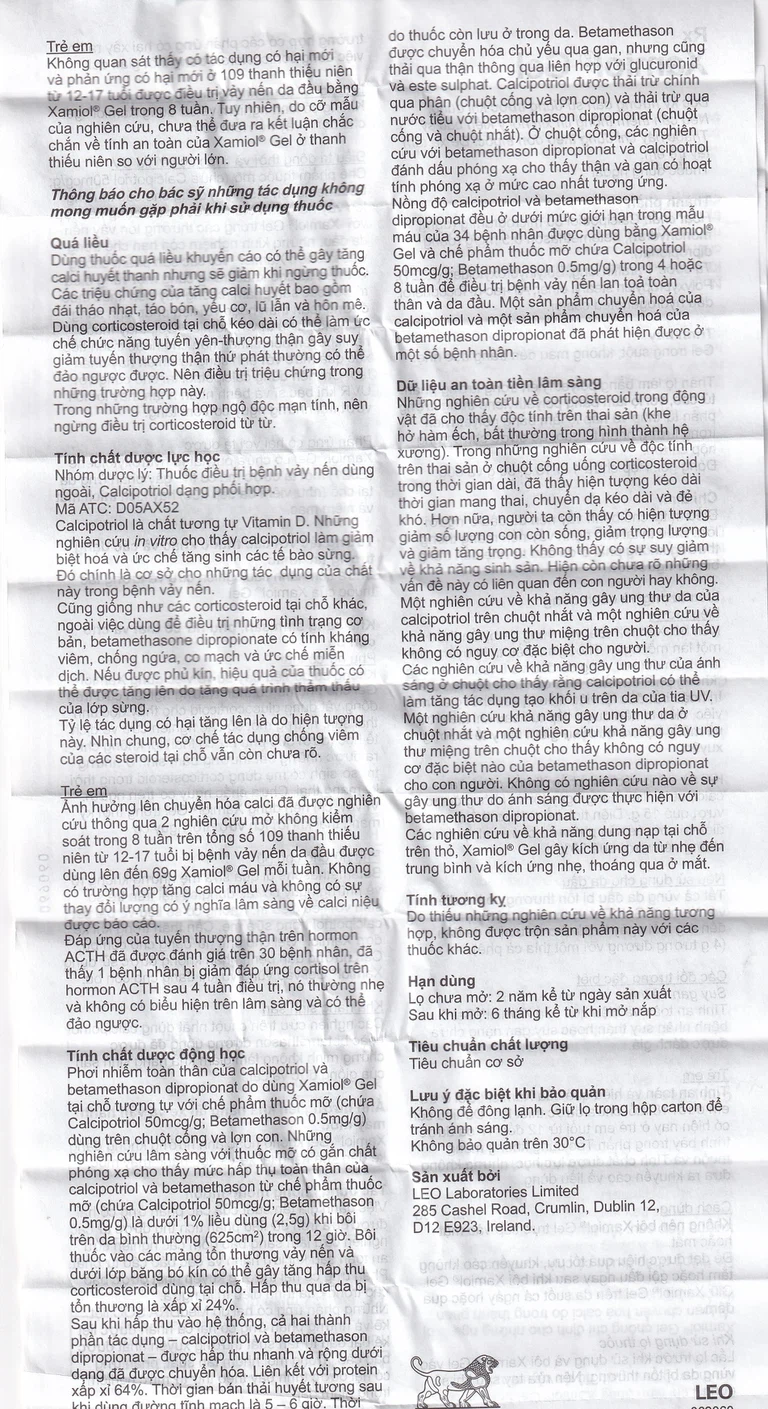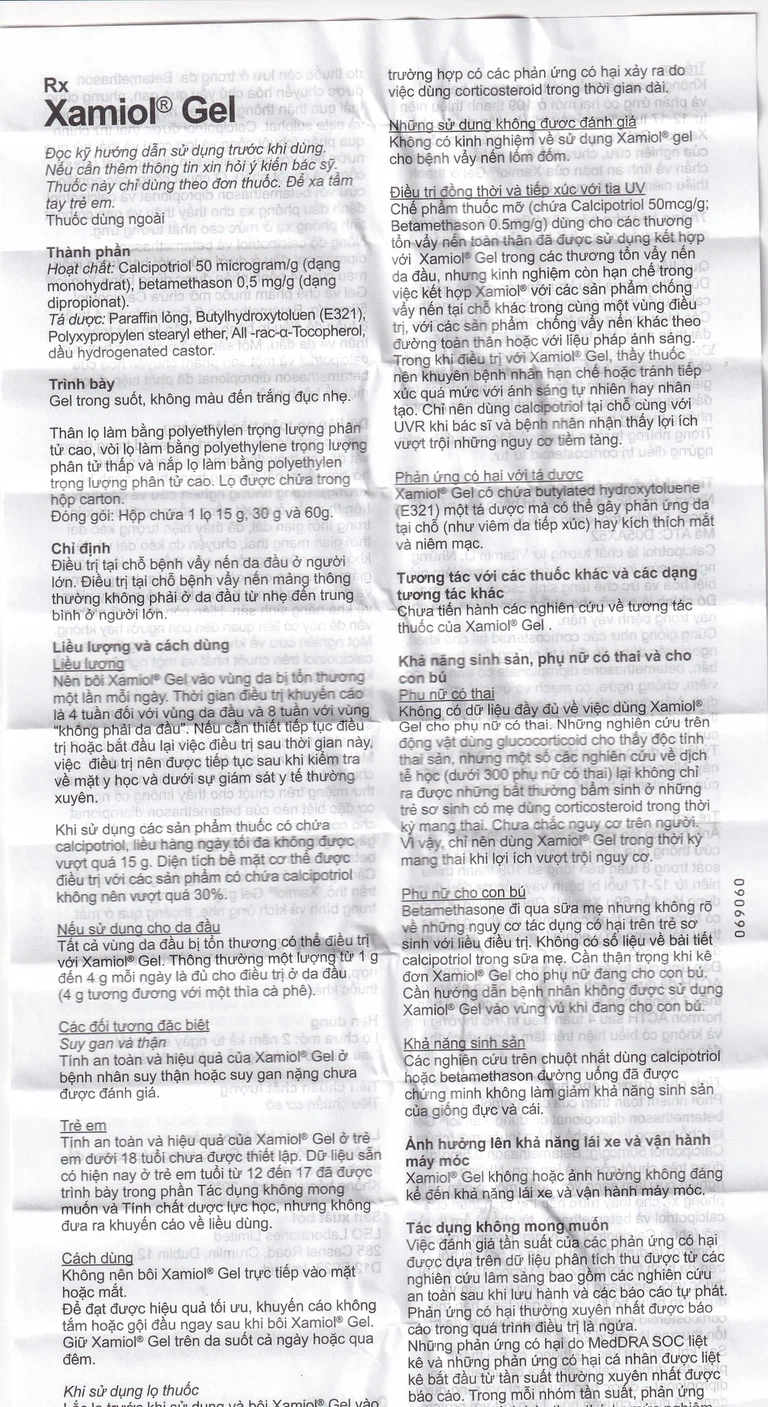 Xamiol Gel được sản xuất bởi công ty Leo (Ireland), thành phần chính là calcipotriolbetamethasone, được chỉ định để điều trị tại chỗ bệnh vẩy nến da đầu.
