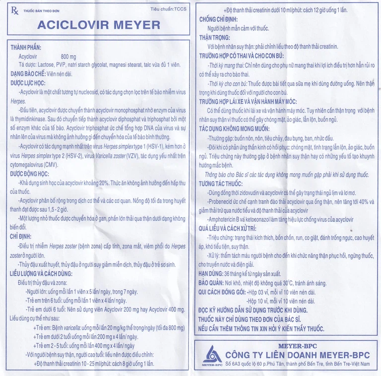 Phân bố: Acyclovir phân bố rộng trong dịch cơ thể và các cơ quan. Nồng độ tối đa trong huyết thanh đạt được sau 1,5 – 2 giờ.