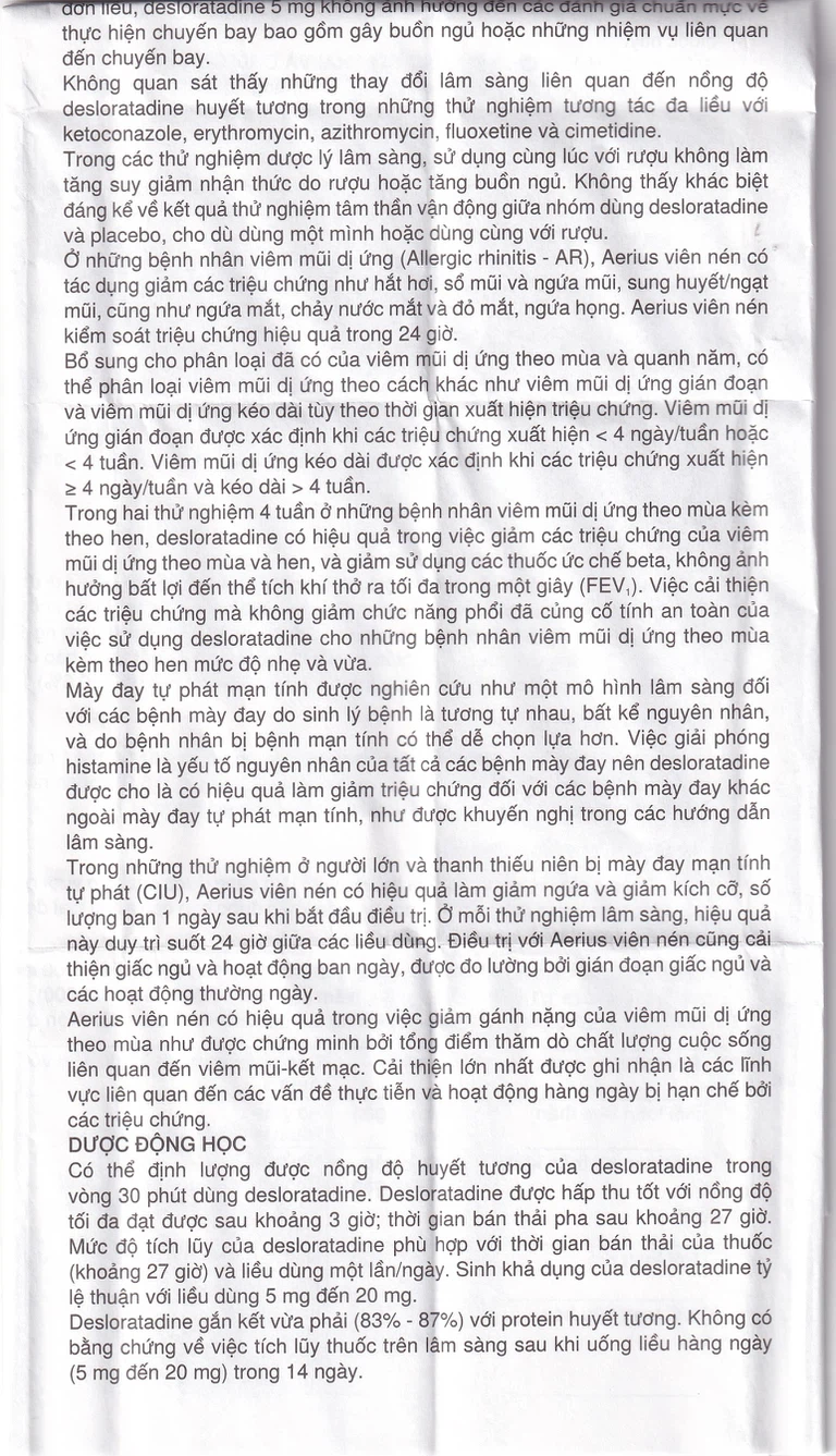- Aerius 5 mg cũng được chỉ định để giảm các triệu chứng liên quan đến mày đay như giảm ngứa, giảm kích cỡ và số lượng ban.