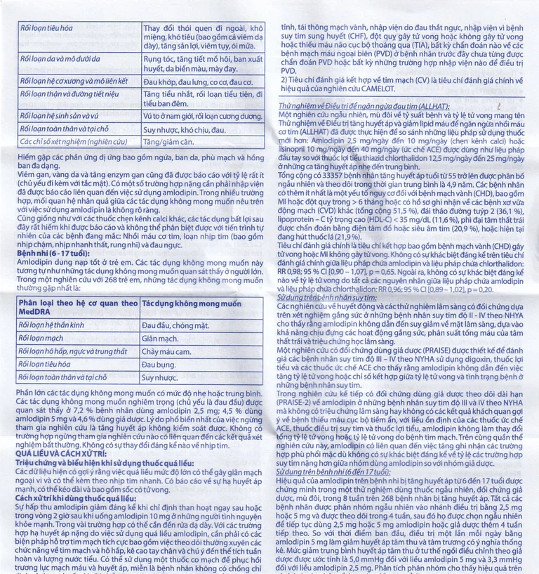Tuy nhiên không có sự khác biệt đáng kể về tỷ lệ bệnh nhân bị suy tim trầm trọng hơn ở nhóm amlodipin so với nhóm giả dược (xem mục Đặc tính dược lực học).