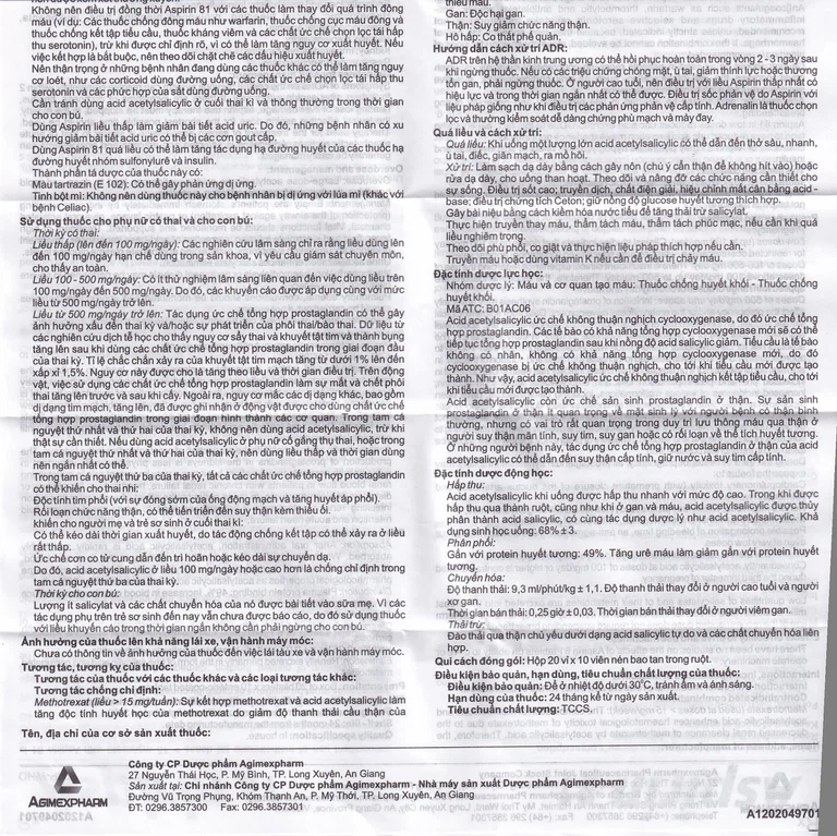 Có thể điều trị ngắn hạn aspirin 81 trong thời gian cho con bú. Trong trường hợp sử dụng lâu dài hoặc dùng liều cao aspirin thì nên dừng thuốc.