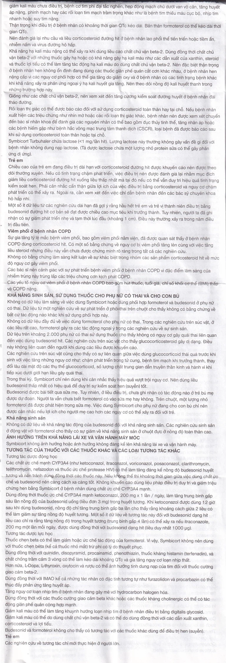 Symbicort Turbuhaler chứa lactose (< 1 mg/lần hít). Lượng lactose này thường không gây vấn đề gì đối với bệnh nhân không dung nạp lactose. (Tá dược lactose chứa một lượng nhỏ protein sữa có thể gây phản ứng dị ứng).