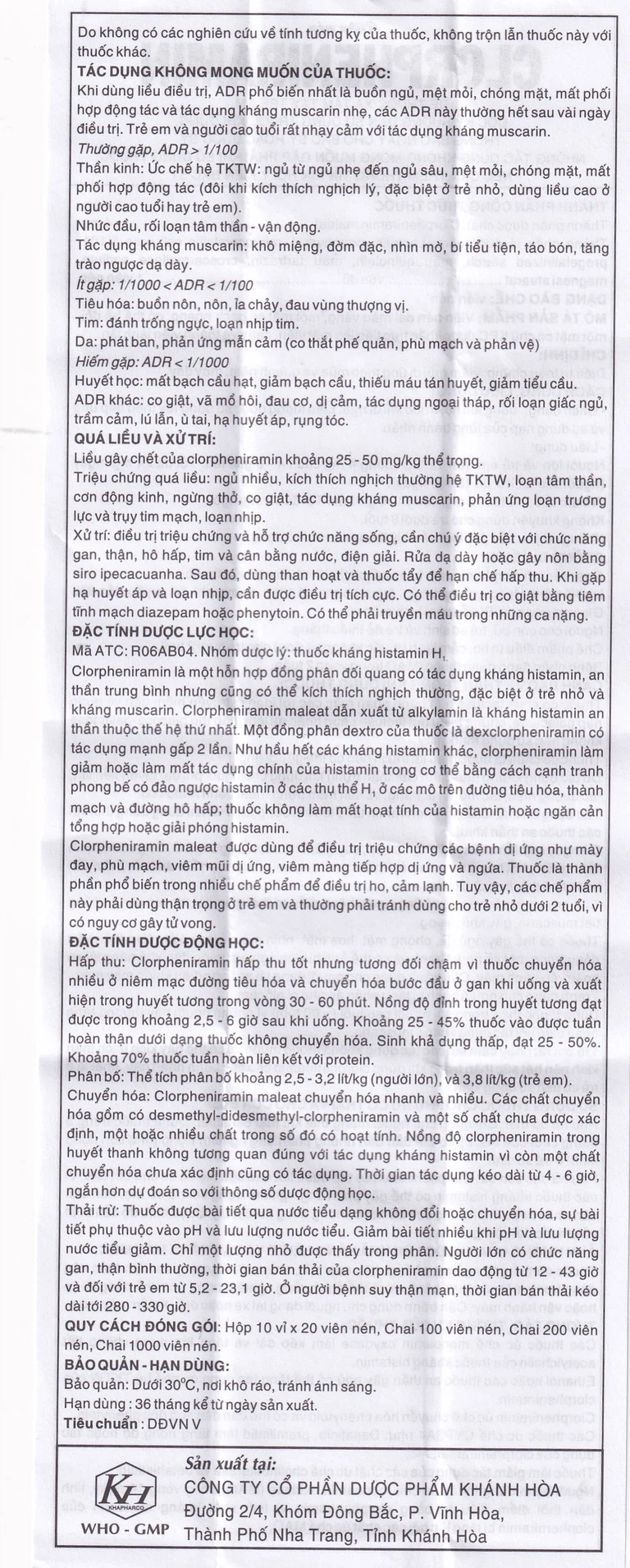 Mã ATC: R06AB04. Nhóm dược lý: Thuốc kháng histamin H.