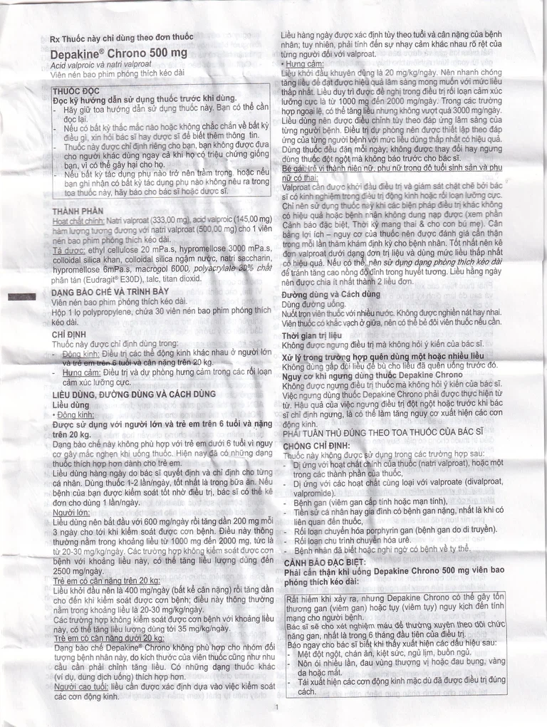 Trước khi sử dụng thuốc Depakine 500mg bạn cần đọc kỹ hướng dẫn sử dụng và tham khảo thông tin bên dưới.