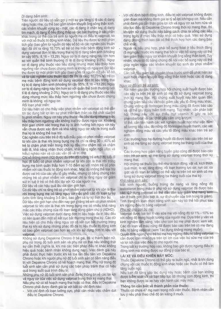 Dạng bào chế Depakine® Chrono không phù hợp cho nhóm đối tượng bệnh nhân này, do kích thước của viên thuốc cũng như nhu cầu cần phải chỉnh tăng liều. Có những dạng thuốc khác (ví dụ, dung dịch uống) thích hợp hơn.