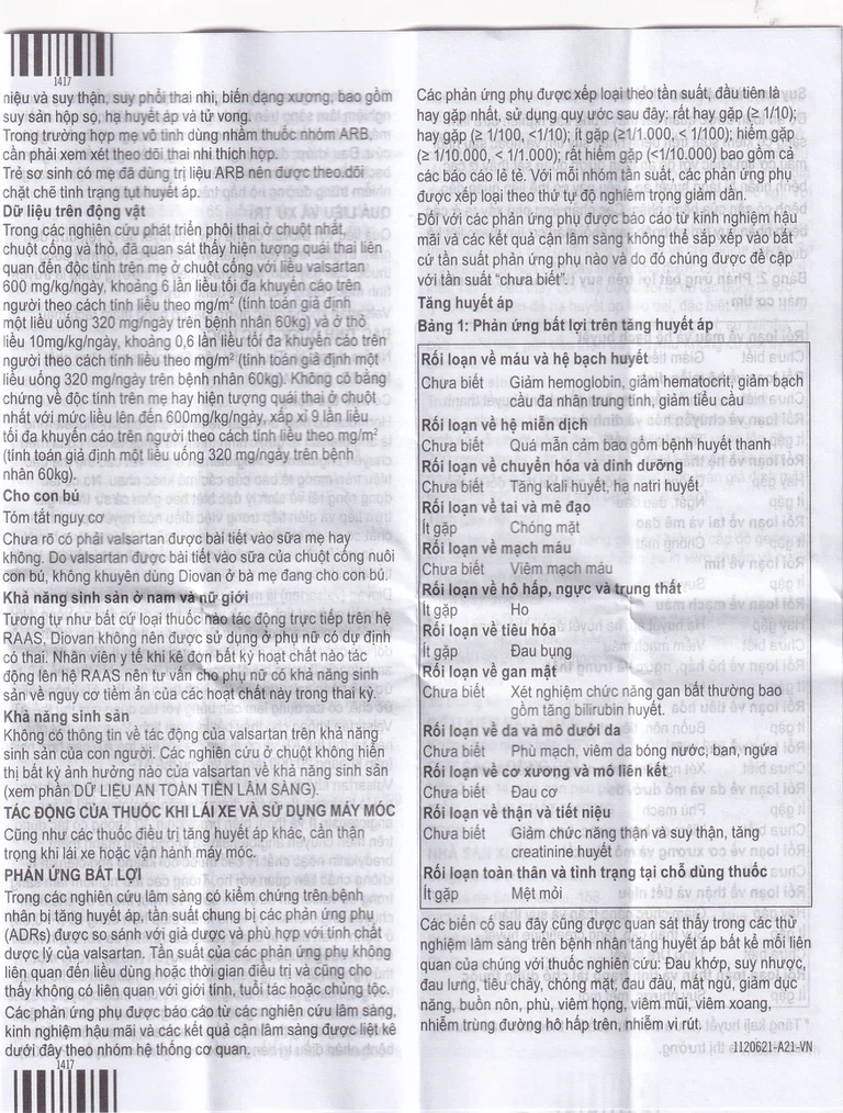 Thời gian theo dõi trung bình gần 2 năm. Liều dùng Diovan trung bình hằng ngày trong thử nghiệm Val – HeFT là 254mg.