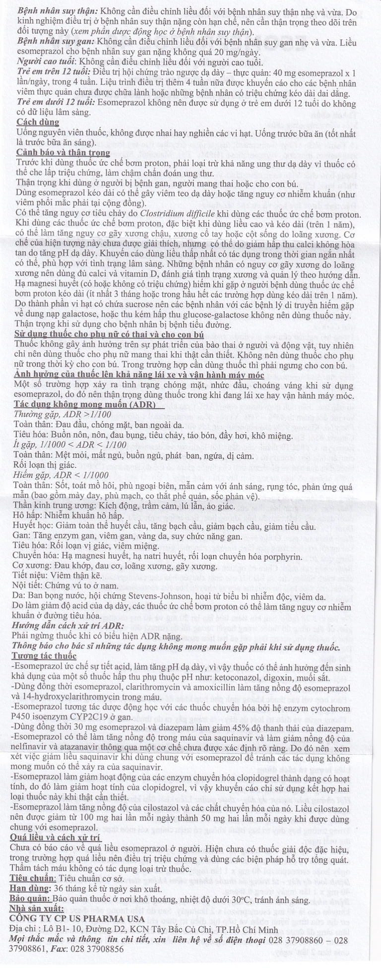 Liều ban đầu được khuyến cáo là 40 mg esomeprazol x 2 lần/ngày.