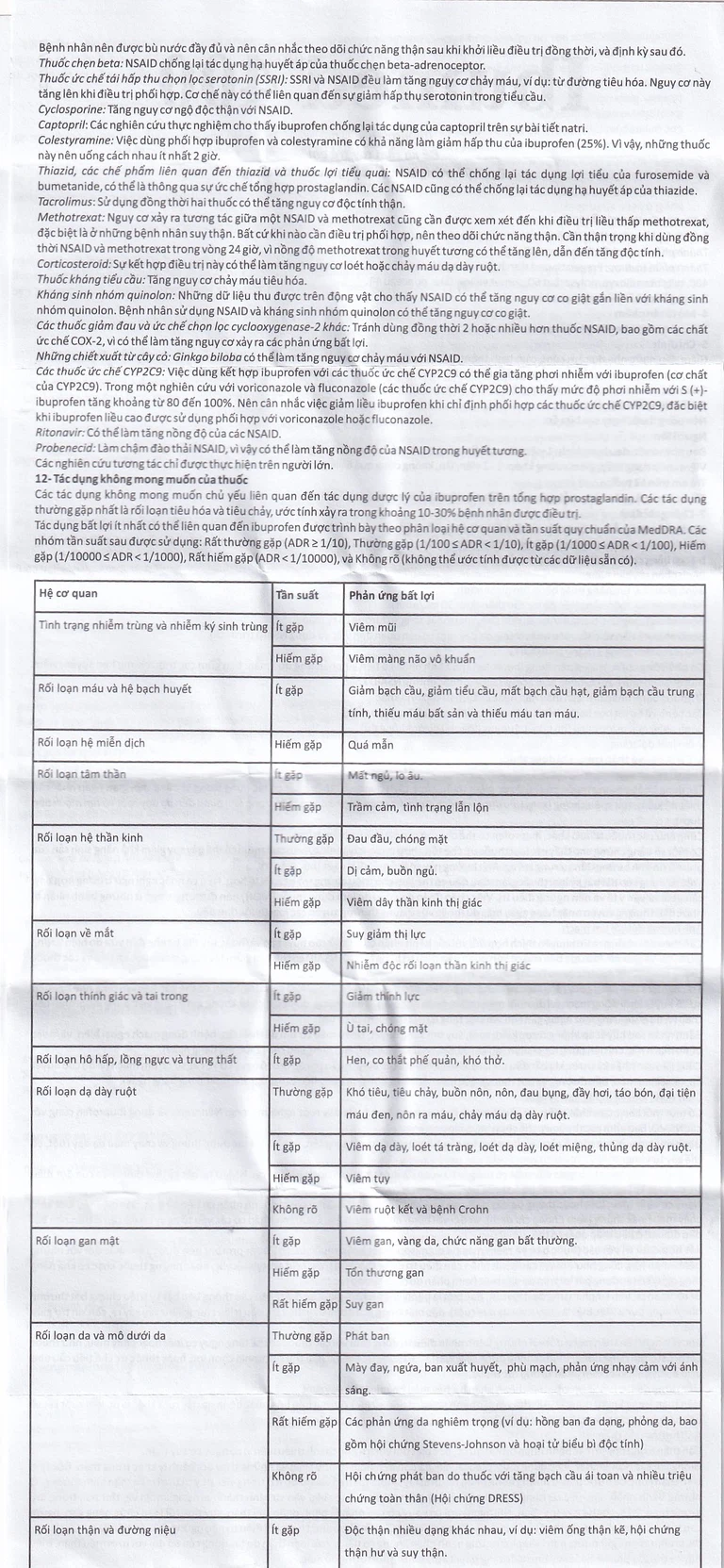 Không nên dùng chung với bất kỳ các thuốc khác có chứa ibuprofen.
